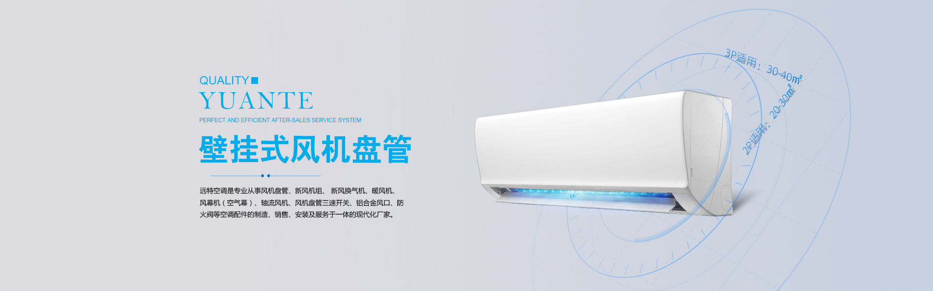 山東遠特空調設備有限公司座落于素有“九達天衢、神京門戶”美譽之稱的中央空調城:德州,是專業從事風機盤管、新風機組、 新風換氣機、暖風機、 風幕機(空氣幕)、軸流風機、風機盤管三速開關、鋁合金風口、防火閥等空調配件的制造、銷售、安裝及服務于一體的現代化廠家。 遠特空調生產的產品主要有: ?風機盤管類:臥式暗裝、臥式明裝、立式暗裝、立式明裝、壁掛式、立柱式風機盤管等; 新風機組類:吊頂式新風機組、立式新風機組、臥式新風機組等; 新風換氣機類:吊頂式新風換氣機、臥式新風換氣機、立式新風換氣機等; 空調配件類:鋁合金風口、對開多葉風量調節閥、防火閥、排煙風口、防火風口、板式排煙口、三速開關、溫控器、電動閥、新風機組表冷器等; 風機類:玻璃鋼負壓風機、暖風機、軸流風機、離心風機、斜流風機、混流風機、風機箱等; 風幕機類:普通貫流式風幕機(遙控型、感應型)、電熱型貫流式風幕機(遙控型、感應型)、離心式風幕機等;